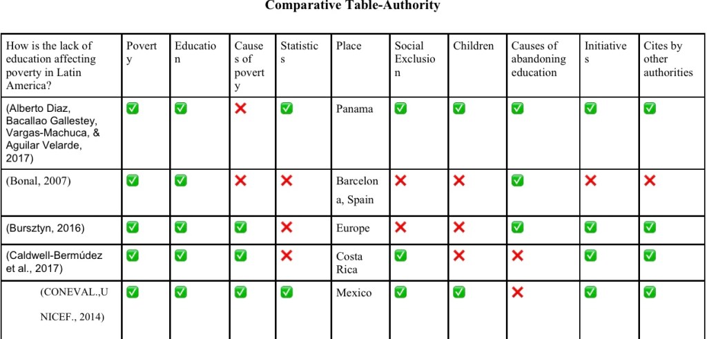 Tags: Comparative table, research branch, timeline, information, authorities, summary, references